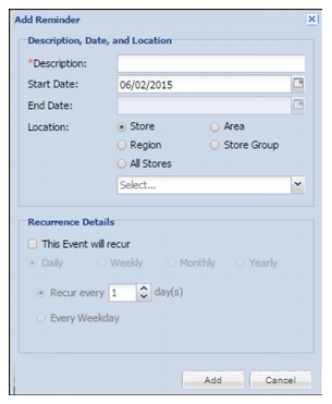 3. Double-click the reminder, to open the Update Events screen and make your changes.